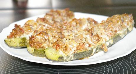Z podanych składników farszu wystarczyłoby na ok. podwójną porcję, można więc użyć 4-6 cukinii i zrobić porcję dla większego lub głodniejszego grona.