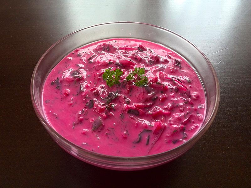 Na koniec do całości dodajemy przestudzoną botwinkę, mieszamy i ewentualnie dosalamy do smaku. Schładzamy w lodówce ok. pół godziny.