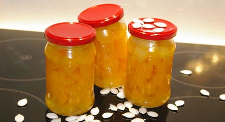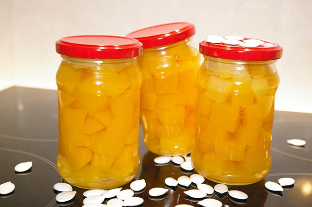 Gotujemy dynię na mniejszym ogniu 5 minut od zawrzenia. Po tym czasie wkładamy ją łyżką cedzakową do słoików pamiętając, żeby nie wpadły nam goździki – powodują, że dynia ciemnieje. Dopełniamy słoiki gorącą zalewą, mocno zakręcamy i stawiamy do góry dnem na ręczniku. Odwrócone słoiki zostawiamy do całkowitego wystygnięcia.
