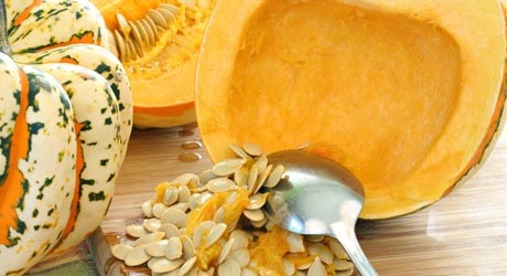 Dynię kroimy na mniejsze kawałki i wydrążamy środek – pestki możemy umyć, osuszyć i wykorzystać do innego dania lub po prostu obrać i zjeść.