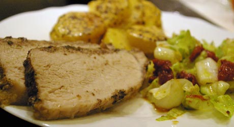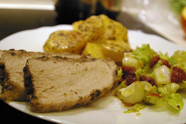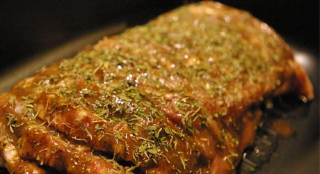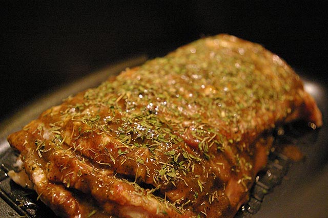 Wszystkie składniki marynaty poza tymiankiem mieszamy i smarujemy nią mięso.