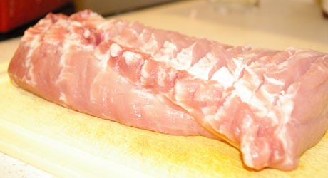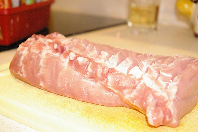 Schab myjemy i osuszamy. Na wierzchu co centymetr robimy nacięcia - lepiej wchłonie się marynata i łatwiej będzie kroić upieczony schab na plastry.