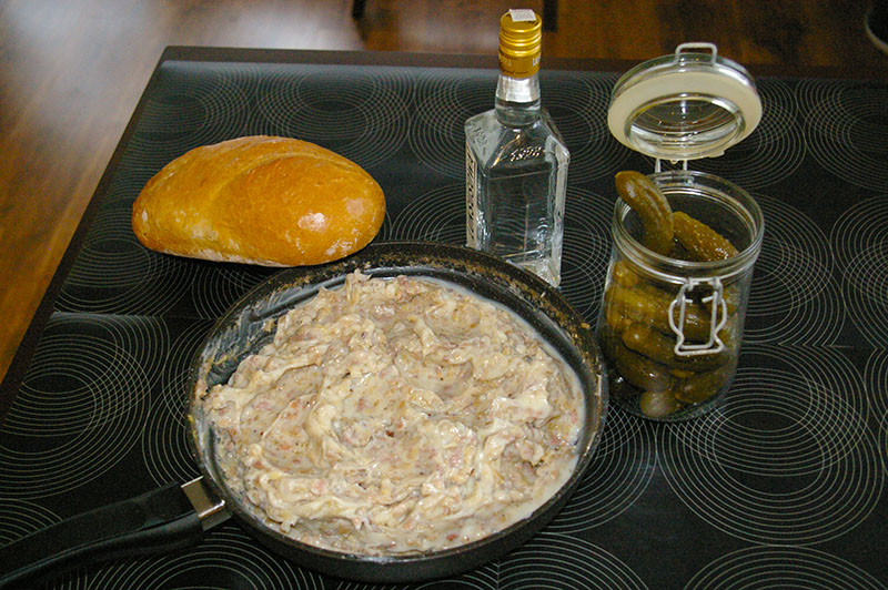 Dokładamy 3 kostki smalcu. Kiedy się rozpuści wyłączamy ogień i ostawiamy patelnię na bok.