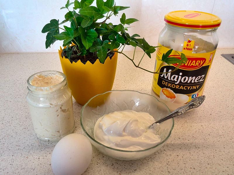 Jajko gotujemy, studzimy, obieramy i ścieramy na tarce o drobnych oczkach, dodajemy chrzan, majonez, śmietanę i solimy do smaku.